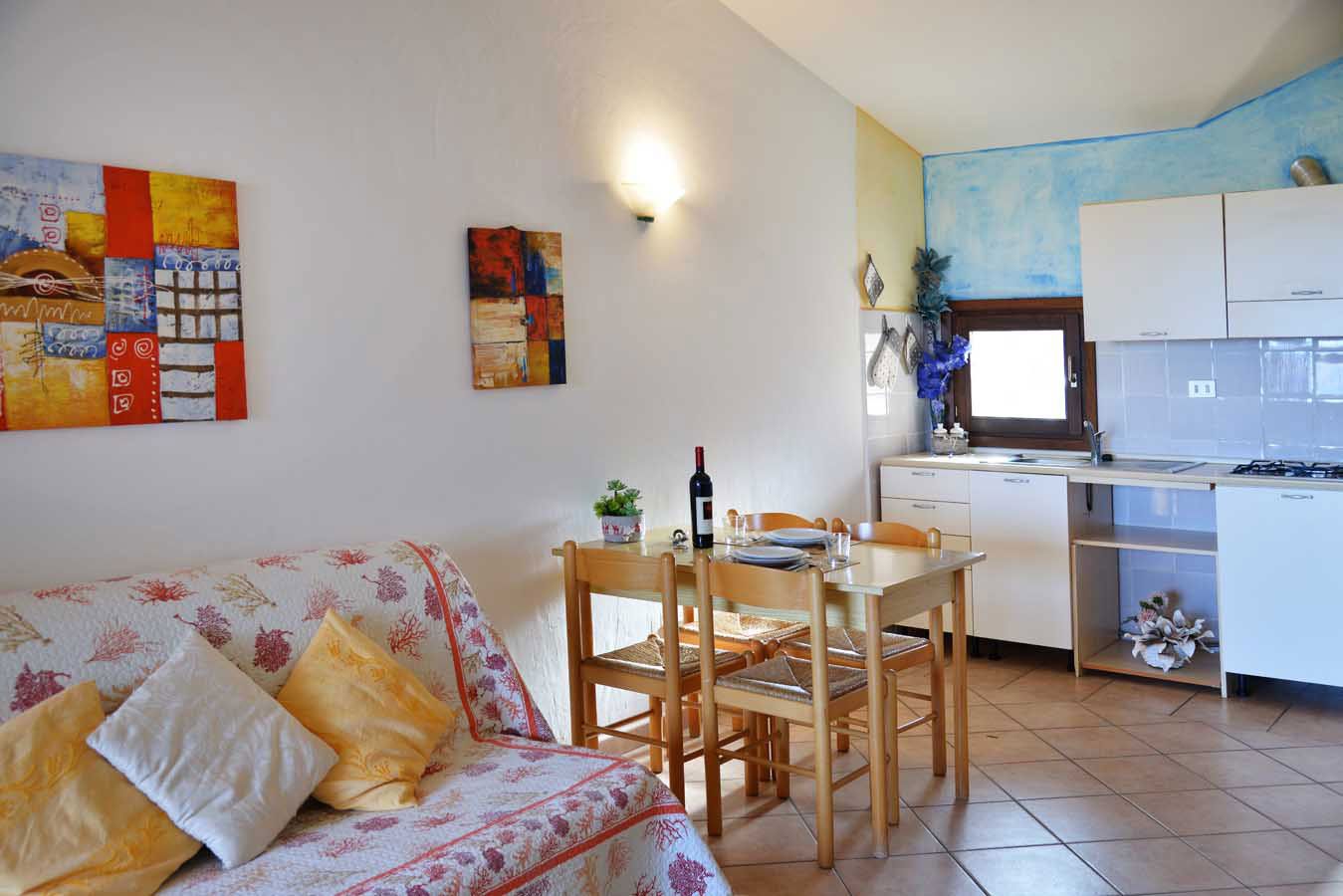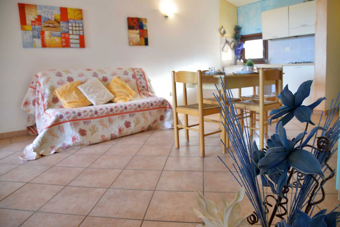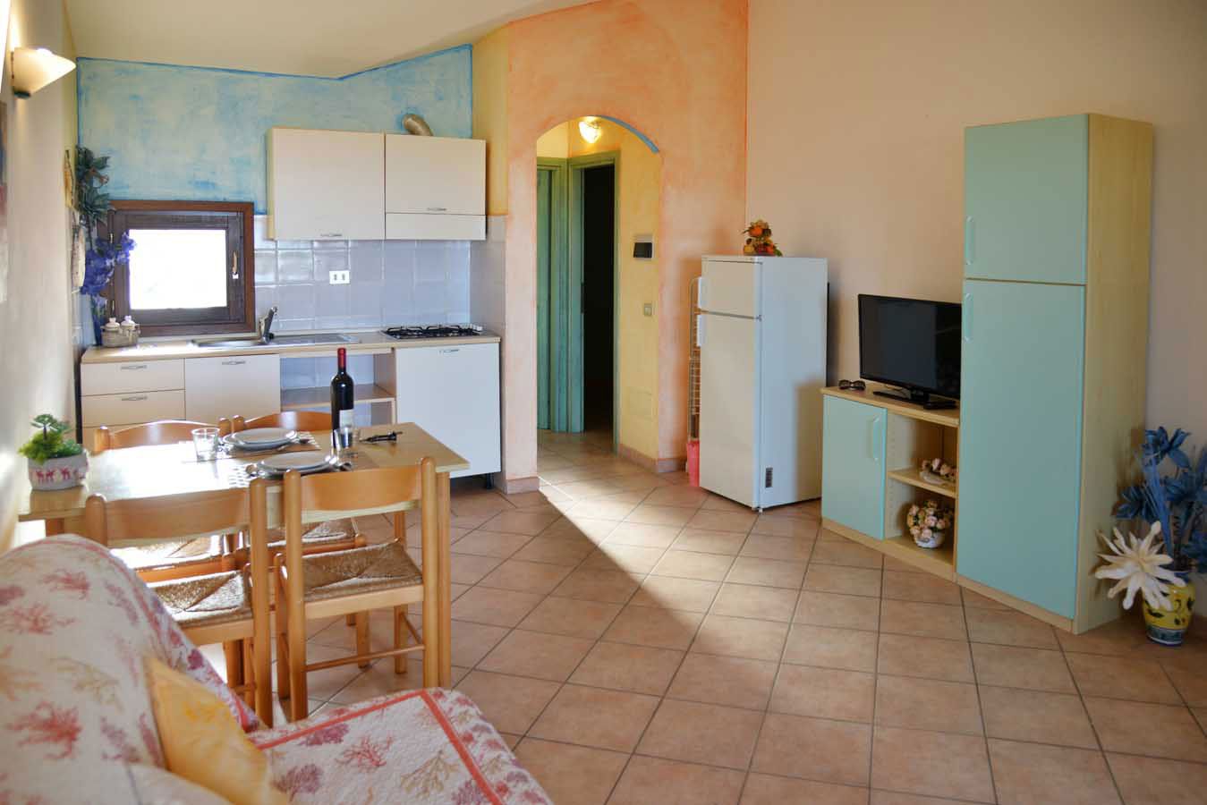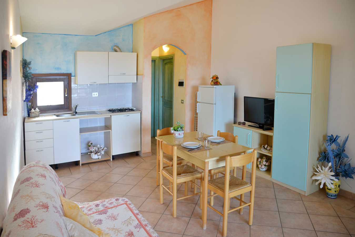 Monolocali: distanti 800 metri dalla spiaggia, con letto matrimoniale ed angolo cottura. Occupazione massima 3 persone inclusa culla. Terza persona solo fino a 6 anni non compiuti. Soggiorno con angolo cottura e divano letto , servizi, veranda o balcone.